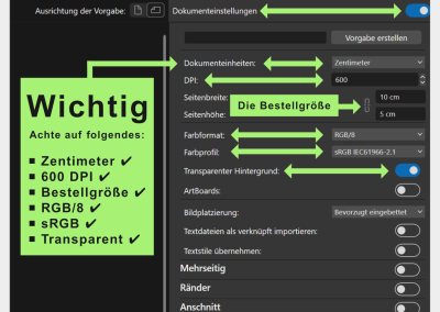 Erstelle die Datei in Übereinstimmung mit der Breite und Höhe Deiner Onlinebestellung.
